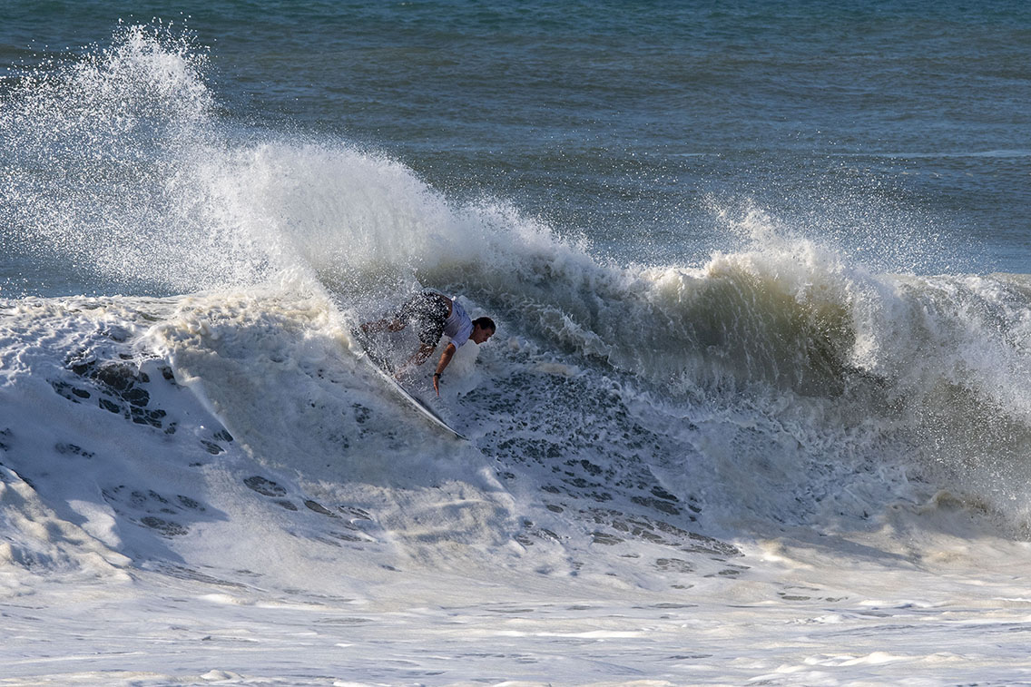 インサイドに向け徐々に掘れ上がってきた波のリップに合わせ